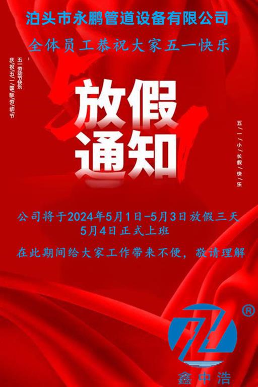 非金屬補償器廠家五一勞動節(jié)放假通知從5月1日-5月3日放假,4-5號有專人值班,期間多有不便望理解。